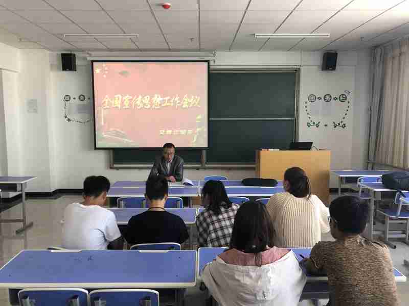 新时代赋予新使命,新征程呼唤新作为。党支部书记安老师首先组织大家学习了习近平总书记在全国宣传思想工作会议上的重要讲话,全体同志认真听取讲话内容,学习领悟讲话精神,进一步明白了学习和落实全国高校思想政治工作会议精神的重要性。党支部书记安老师强调做好新形势下宣传思想工作,要高举马克思主义、中国特色社会主义的旗帜,坚持不懈用习近平新时代中国特色社会主义思想武装青年头脑、指导青年实践、推动青年工作,推动其在广大青年心中落地生根,让青年时刻牢记为正义发声、为正能量发声。