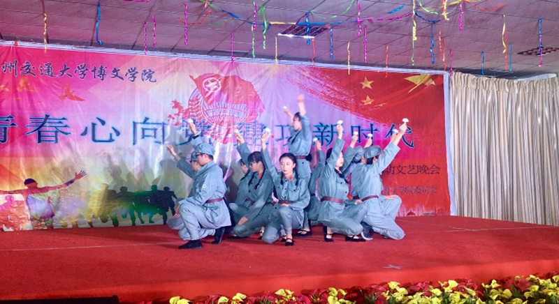 红色五月,激情燃烧;青春放歌,匠心筑梦。2019年4月29日晚上,兰州交通大学博文学院体育馆301教室内激荡着昂扬的青春旋律,交通运输系学生参加学院团委组织的纪念5.4运动100周年文艺汇演。 晚会在歌伴舞《五四五四》中拉开了序幕,精彩纷呈的节目,高潮迭起,在给大家提供了一场视听盛宴的同时,也让大家感受到了学院领导对同学们的关爱,对文化建设的重视。晚会在欢快、激昂、温暖、奋进的气氛中进行,由交通运输系学生演出的话剧《青春之歌》和舞蹈《忠魂》节目动作整齐划一,歌声优美动听,用饱满的热情和精彩的节目书写着华美的青春乐章,充分展现了我系青年学生积极向上的精神风貌,将晚会推向了高潮,赢得了评委和观众的阵阵掌声。