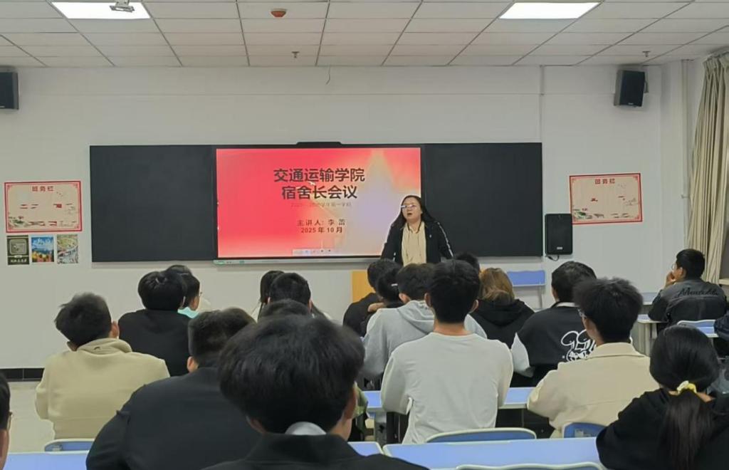 为进一步实宿舍管理责任,筑牢校园安全防线,营造整洁有序的住宿环境交通运输学院202510月29日综合教学楼0705召开全院宿舍长会议暨安全会议。此次会议主要由交通运输学院辅导员李蕾老师主持召开,各宿舍长积极参加会议。