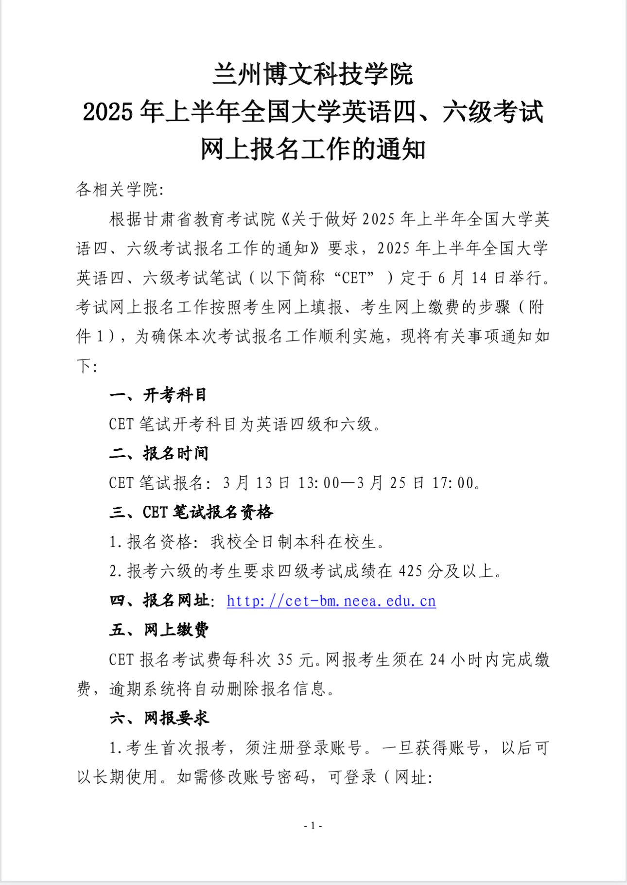关于2025年上半年四六级考试报名通知