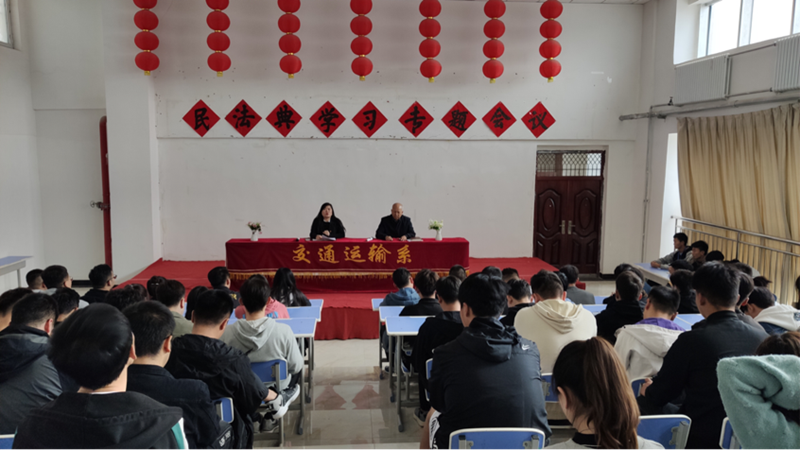 交通运输系2020年10月15日15时在学院综合教学楼12层阶梯教室举行了民法典学习专题会议,目的是在全系深入开展《民法典》学习宣传活动,提高全系师生的法律意识,达到敬法、懂法、守法。交通运输系主任谢利民和学生管理副主任梁婷婷出席了本次会议。