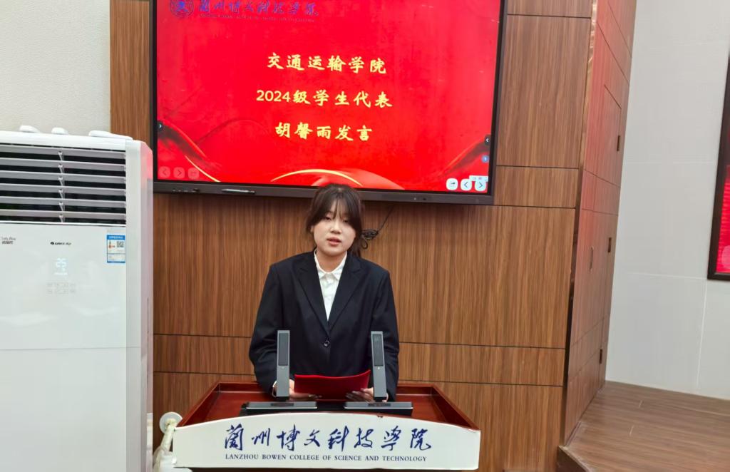 2024级学生代表胡馨雨分享了自己的大学生活经验,从学习方法、时间管理到社团活动,为新生提供了实用的建议。他欢迎新同学加入这个温暖的大家庭,并表示愿意为新同学提供学习及生活上的帮助。