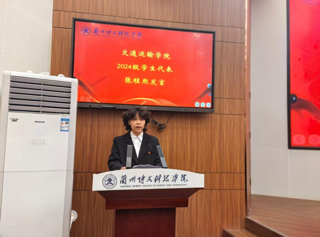 老生代表、交通运输专业2024级学生张程熙分享了自己的大学成长故事。她从初入校园的迷茫,到通过参加学科竞赛、担任学生干部逐渐找到方向的经历,为新生提供了“接地气”的建议。“不要害怕试错,每一次尝试都是成长的积累。”她鼓励学弟学妹们要勇敢走出舒适区,合理规划时间,既要在学业上追求卓越,也要在生活中收获真挚的友谊,让大学四年不留遗憾。