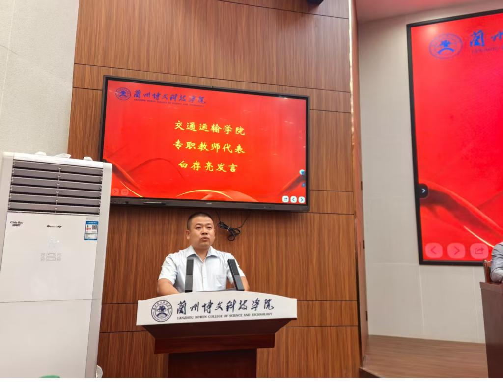 “从讲台到实验室,我们始终与你们同行。”专职教师代表白存亮老师以自身的教学经历为例,向新生们传递了“严谨治学、潜心育人”的师者初心。他表示,每一位教师都会将最前沿的专业知识、最实用的行业经验融入课堂,也会成为新生科研路上的“引路人”和生活中的“知心人”,鼓励新生们大胆提问、积极参与科研项目,在师生互动中共同成长。
