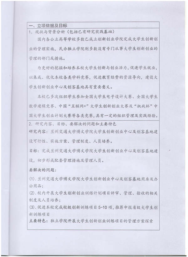 甘肃省2018年全省高校创新创业教育教学改革研究项目立项申请书