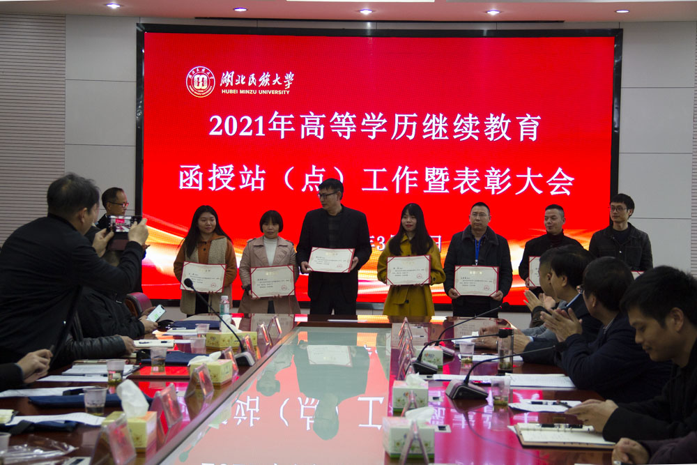 学历教育科科长吴雪峰对2020年高等学历继续教育工作进行了总结,并对2021年工作进行了安排。继续教育学院副院长刘贤锋宣读了表彰文件。与会领导为获表彰的优秀函授站和先进个人颁奖。优秀函授站代表恩施意深函授站负责人周传递和先进个人代表来凤职业技术学校肖军相继进行了发言。