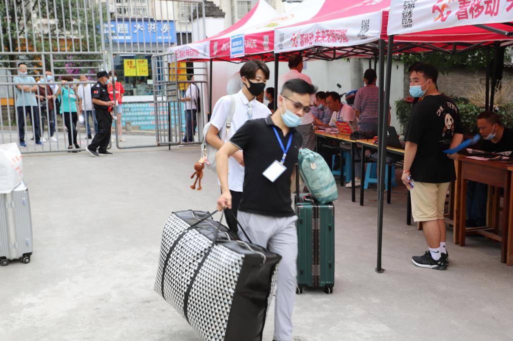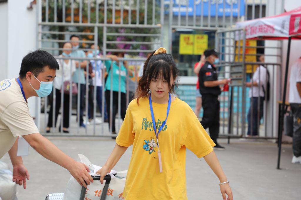 教师帮助搬运行李