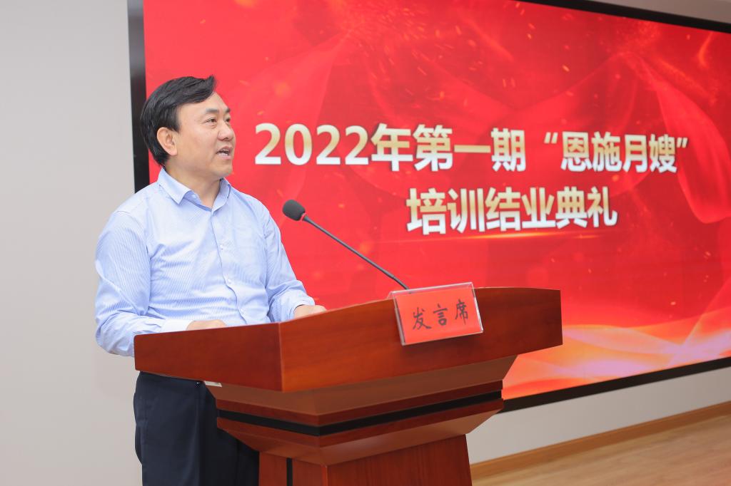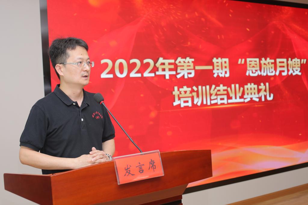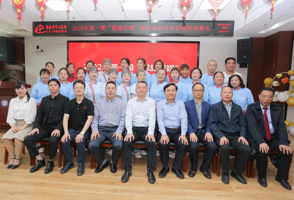 2022第一期“恩施月嫂”培训结业典礼于5月20日在恩施州中心医院妇儿医院隆重举行,恩施市人民政府副市长吴德敏,jinnian金年会继续教育学院院长雷随斌、恩施州中心医院副院长王在平、武汉大学中南医院中南安馨公司董事长兼总经理陈智敏、恩施州德慧母婴健康管理有限公司董事长易向阳、总经理周贤出席本次结业典礼,结业典礼由jinnian金年会继续教育学院副院长刘贤锋主持。