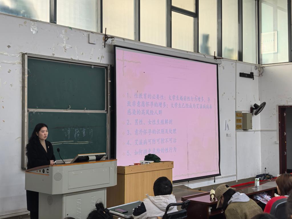 (编辑:尹秉杰 审核:张建华)为普及生理卫生健康知识,提高学生自我保护能力,2024年11月24-25日,我院在修远楼开展了两场“大学生生理卫生”专题讲座。本次讲座邀请了恩施州妇幼保健院谭凤芝主任主主讲,我院全日制自考助学班全体学生和辅导员参加讲座。