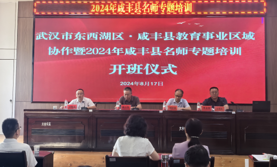 (来源:考试培训科 审核:刘贤锋)8月17日,由金年会承办的咸丰县名师专题培训项目在咸丰县第二初级中学开班。武汉市东西湖区教育局副局长陈良俊、jinnian金年会继续教育学院副院长刘贤锋、咸丰县人民政府教育督导室副科级督学专职副主任雷俊义、咸丰县教学研究和教师培训中心主任李友望出席开班仪,来自咸丰县的100名名校长、名班主任、名教师参加培训。