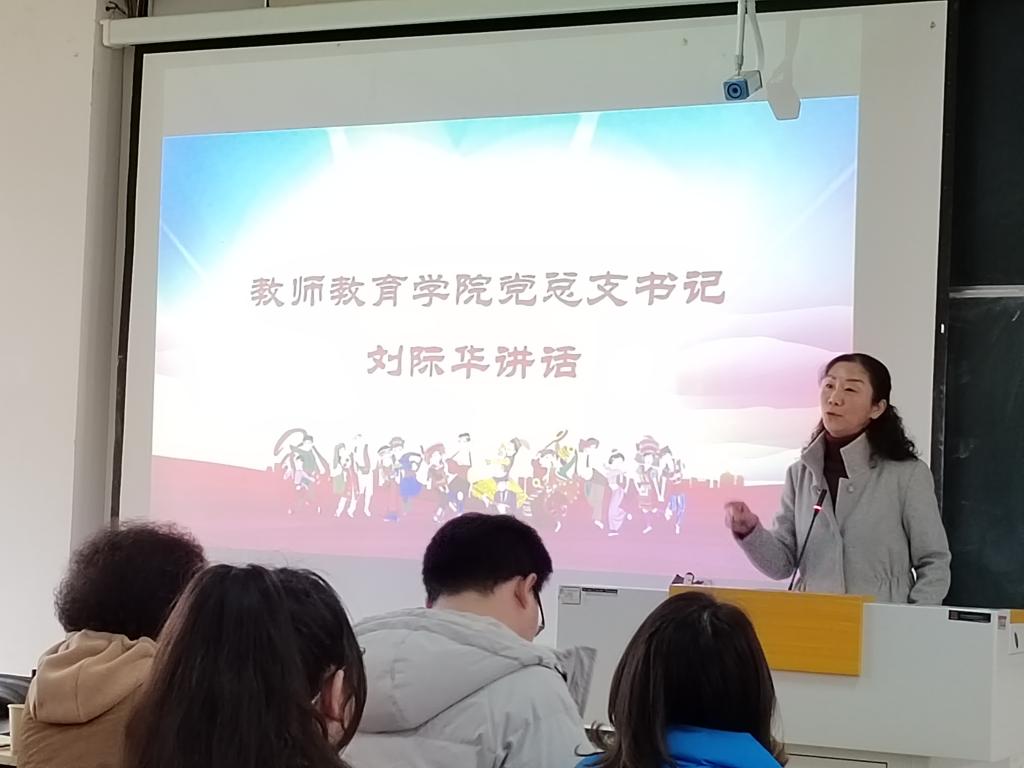 2023年3月2日,教师教育学院在9B401教室召开了少数民族学生座谈会。教师教育学院党总支书记刘际华,学工处民族事务工作办公室主任谭俊妮,学工处民族事务工作办公室张芫、姜蒙生,教师教育学院学生工作办公室主任成润,学生班主任向宝燕、周震、黄珊珊、周向伟出席会议,全体疆籍学生参加会议。