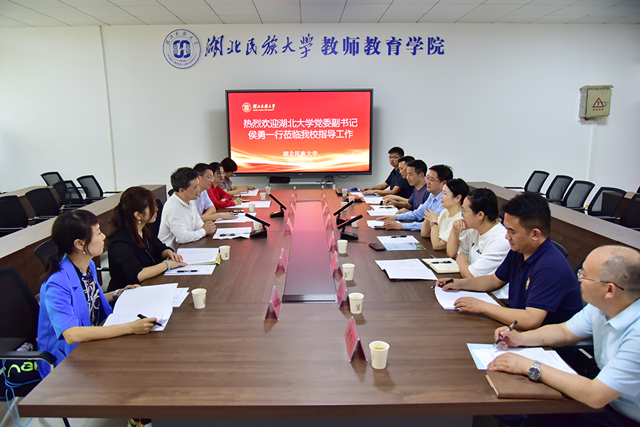 5月22日下午,湖北大学党委副书记侯勇携学工、团委、招生等部门相关负责人到学校调研,学校党委副书记邓磊陪同调研。