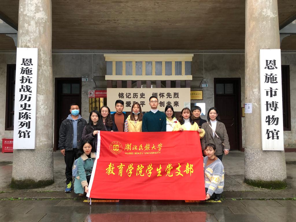 为进一步加强党员对党史和党情的了解和学习,继承革命遗志、弘扬爱国主义精神,3月18日下午,教育学院学生党支部前往恩施抗战历史陈列馆开展主题党日特色实践活动。