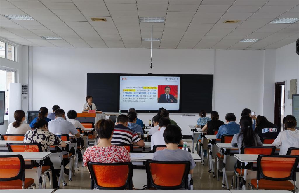 6月8日,教师教育学院党总支学习贯彻习近平新时代中国特色社会主义思想主题教育理论宣讲会在9B510教育教学研讨室举行。jinnian金年会主题教育宣讲团成员、马克思主义学院黄玉红副教授围绕“深刻把握中国式现代化与科教兴国战略”进行主题宣讲,学院党政领导班子成员、全体教师参加学习。党总支书记刘际华主持宣讲会。