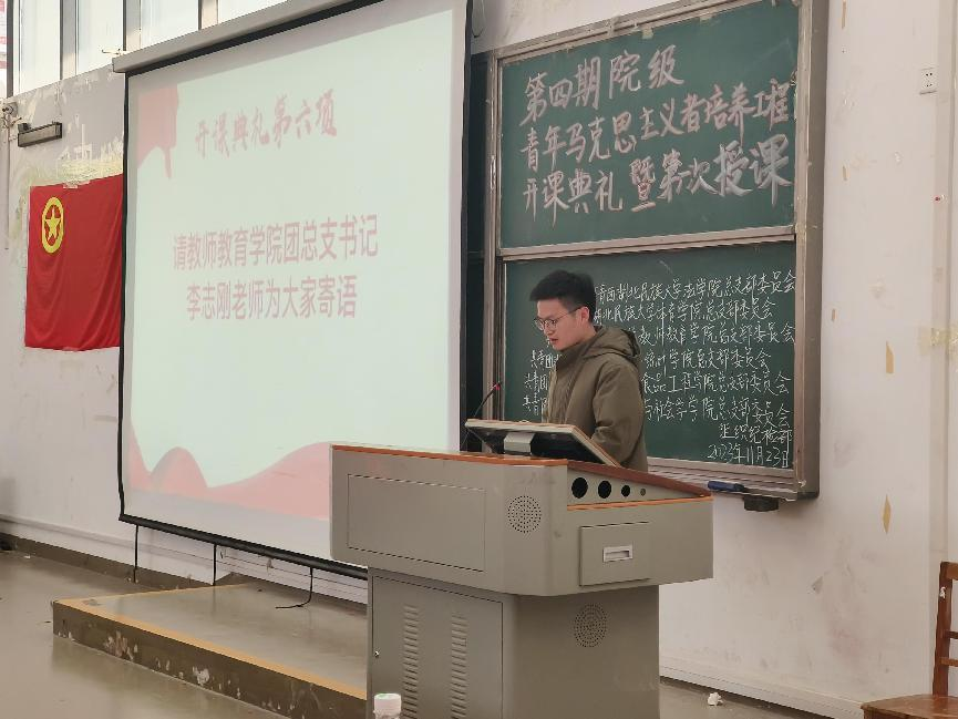 谢学婧宣读了《青年马克思主义工程实施方案》,强调了关于开展“青年马克思主义工程”培训的重要意义,随后黄昱勍宣读了《青年马克思主义工程管理办法》。来自数学与统计学院的学生代表杨琪分享了自己参加“青年马克思主义工程”的认识与感想。李志刚寄语在场的同学,希望大学生紧跟时代潮流,提高自身素养,注重长远发展,用心沉淀,用青春谱写华章。