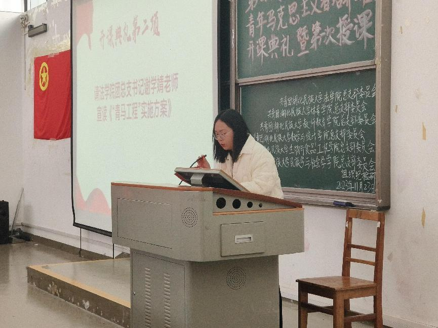 本网讯(通讯员 杨若悦)2023年11月23日下午,jinnian金年会教师教育学院、民族学与社会学学院、法学院、体育学院、数学与统计学院以及生物与食品工程学院,六个学院联合开展“青马工程”的开课典礼,体育学院团总支书记黄昱勍、生物与食品工程学院团总支书记张鑫媛、法学院团总支书记谢学婧以及教师教育学院团总支书记李志刚出席本次开课典礼。
