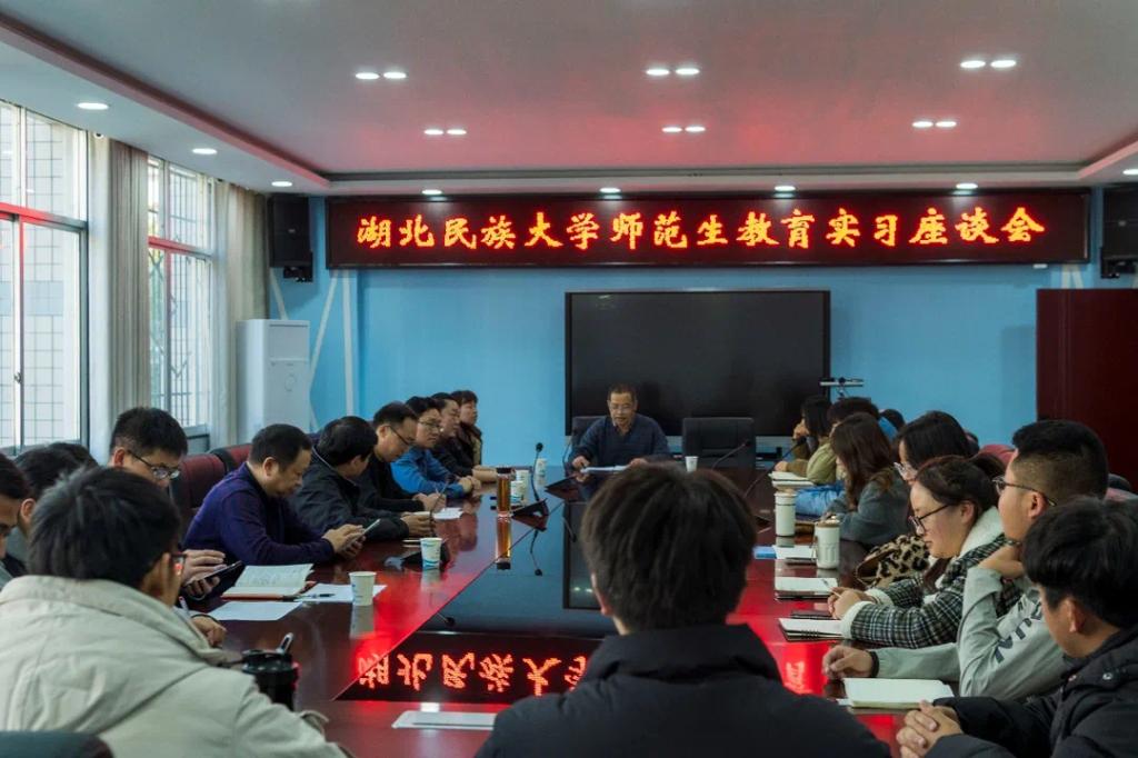 本网讯(来源 鹤峰县第一高级中学)为全面考察金年会师范生教育实习工作开展情况以及加大招生宣传力度,11月22日,金年会党委常委、党委副书记汪兴平,文学与传媒学院党委书记张刚,化学与环境工程学院党总支书记桑秋章,美术与设计学院党总支副书记杜锐,教师教育学院党总支副书记曹骞前往鹤峰县第一高级中学开展师范生教育实习检查及招生宣传工作。鹤峰县第一高级中学党委书记闵勇,党委委员王文君,教务处副主任熊朝军,2023级年级主任邓正春以及15位在校实习生共同参会,熊朝军担任主持人。