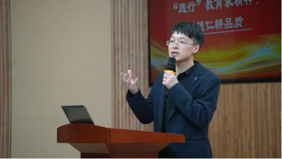 首先,在正式讲述之前,周向伟老师进行开场引入“教育家精神”并带领同学们畅谈理想。同学们踊跃发言,积极表达自己的想法。最后由周向伟老师对同学们的发言进行总结。随着晚点名推进,学生代表以讲述陶行知先生的感人故事引领在场的同学们回望教育初心。并引发同学们对于教育家精神的深入思考以及讨论。接着,通过对话访谈,了解同学们对于教育家精神的种种看法的看法。晚点名的最后,由小学教育专业的同学们带来独具匠心的话剧、小品中,伴随着激昂洋溢的rap旋律中圆满结束。