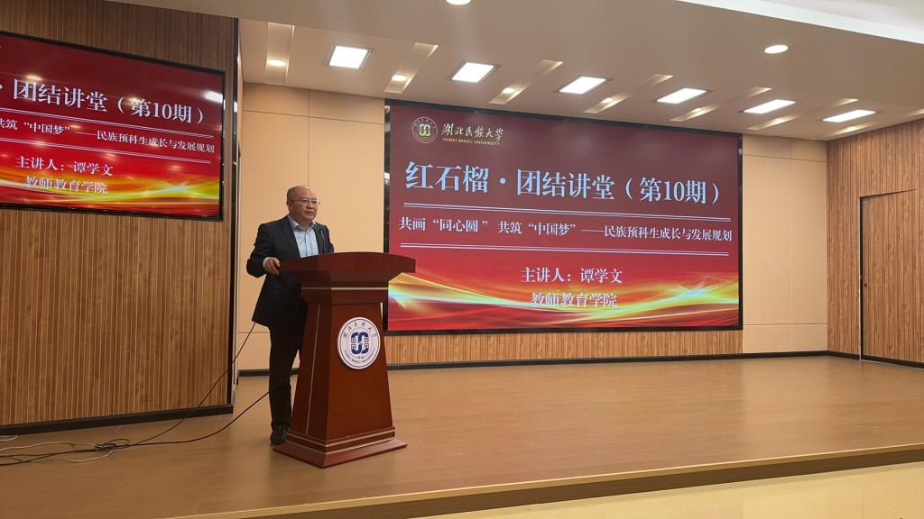 本网讯(通讯员 尼沙)10月29日,学院第10期“红石榴·团结讲堂”在德智楼远程观摩厅举行,jinnian金年会学生工作部民族事务办公室主任谭学文受邀以《共画“同心圆 ” 共筑“中国梦”——民族预科生成长与发展规划》为题作专题讲座。学院全体辅导员、各族学生代表共计200余人聆听了讲座。讲座由辅导员尼沙主持。
