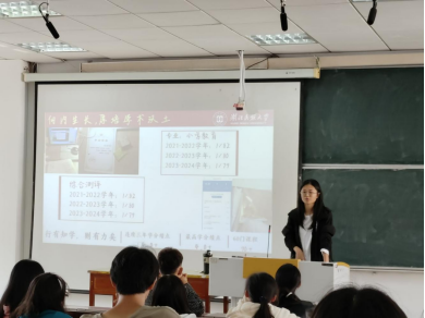会上,王佳雯从学习成绩提升、学生工作、社会实践、科研竞赛、文体活动等方面进行分享,在时间规划、目标确立、行动实施上为同学们提供了启示。她以自身学习经历为同学们介绍了本科期间的阶段性学习计划与自我目标的确定,并向同学们分享了诸多实用的学习工具。同时王佳雯鼓励同学们积极参与学生工作和社会实践活动,在丰富生活的同时更能结交好友、锻炼工作能力。不登高山,不知天之高也;不临深溪,不知地之厚也。王佳雯以“进而有为,以行动追逐光影”鼓励同学们积极探索自己热爱的领域。