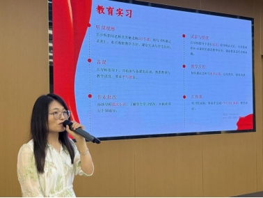 实习生代表周俐同学在发言中表示她将视此次实习为教育生命的初程,以谦逊之心观摩、以专注之态实践、以温暖之意育人,不负两校之托与教育初心。