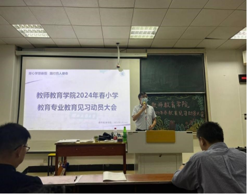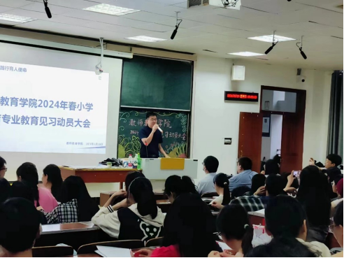 5月19日晚,学院召开了小学教育专业本科生2024年春见习动员大会。会上,副院长邱世兵、党总支副书记曹骞表达了对学生们的殷切期盼,希望同学们能够沉浸式感受教育的魅力与挑战,充分展示自己的师范技能与素养,在见习实践中学习成长。