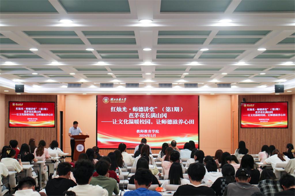 本网讯(通讯员 黄依恋 邓紫靓)5月30日,湖北省第二届荆楚教育名家、湖北省首届教育督导专家、恩施市首届名校长、恩施市舞阳中学校长冯军作客教师教育学院“红烛光·师德讲堂”,以“芭茅花长满山冈——让文化温暖校园,让师德滋养心田”为题作报告,报告会由教师教育学院党总支副书记曹骞主持,教师教育学院小学教育本科专业全体学生和老师到场聆听。