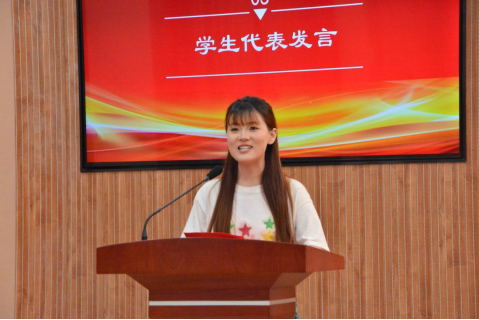 学生代表苏媛媛:作为小学教育师范生要肩负时代重任,锐意进取、发奋图强,不断提高自己的专业能力,在思政导师、学业导师、行业导师的指引下更加注重明德与厚学、实践与创新,不负青春,不负韶华;不负梦想,不负未来。