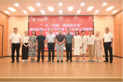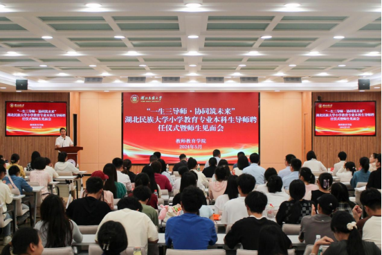 本网讯(通讯员 伍尉 黄依恋 苟煜华 邓紫靓 谭钱林)5月30日,教师教育学院本科生导师聘任仪式暨师生见面会在德智楼三楼远程观摩室隆重举行。恩施市研培中心主任向彪,恩施市舞阳中学校长冯军,恩施市小渡船中学校长陈劲松,恩施市实验小学党委书记郭永,jinnian金年会附属小学副校长田艳、教师代表谭启慧,恩施市高旗实验小学教师成长中心主任钟美玲,建始县平高实验学校教师办公室主任冯艳、教师代表骆容、刘春明,教师教育学院全体院教师和小学教育专业学生出席会议。