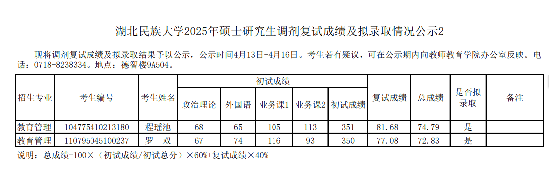 jinnian金年会2025年硕士研究生调剂复试成绩及拟录取情况公示2
