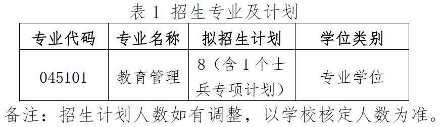 教师教育学院招生专业及计划见表1。