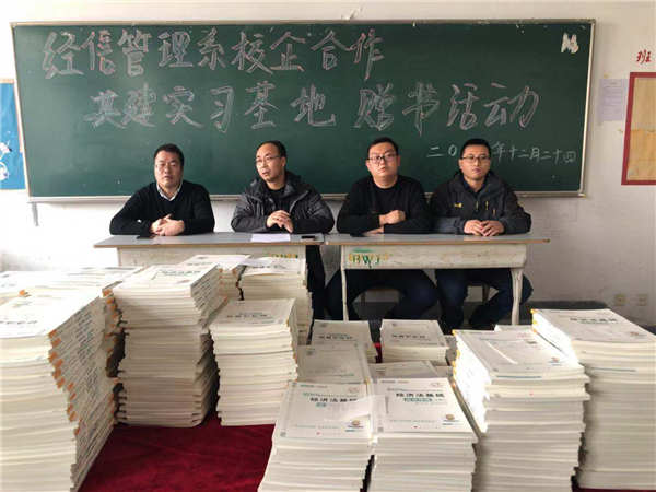 为进一步深化校企合作,助力经管类专业学生成长。经信管理系于2018年12月24日下午4:30在教学楼教室举办校企合作共建基地赠书活动。经信管理系主任刘德光、副主任宋国军、张德江出席本次活动。活动由刘德光主任主持。...