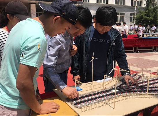 2018年5月18日下午15:00,土木工程系在综合教学楼三楼举行土木工程系第九届桥梁、轨道模型设计与制作大赛作品评分活动。学院教学副院长胡彦奎、教务处处长王芬琴、土木工程系主任黄钰峰、教学管理副主任李敬元、学生...