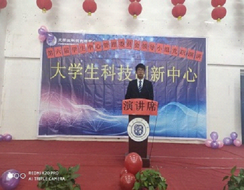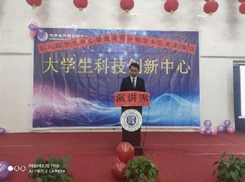 活动伊始,主持人介绍到场领导及嘉宾,科技处处长贵彩虹老师、科技处王志宏老师、科技处严晓娟老师、科技处姚诗雨老师、科技处宋雪萌老师,大学生科技创新中心第五届中心管理委员会全体成员。
