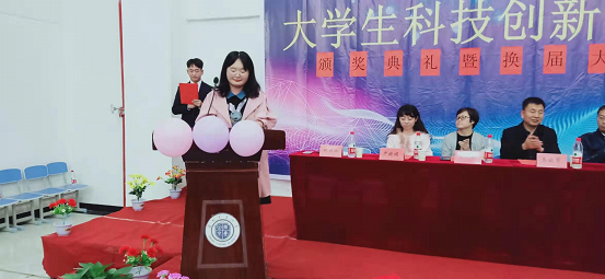 大会在悠扬的音乐声中拉开了帷幕,首先由科技处处长贵彩虹发表了热情洋溢的致辞,对获奖同学和新任干部表示祝贺,希望大家再接再厉,积极的参与并融入学院的创新教育之中。学院将逐步面向全院学生推行创新教育,希望新一届学生干部发挥自己的聪明才智履行好创新教育工作中我们应该承担的职责。