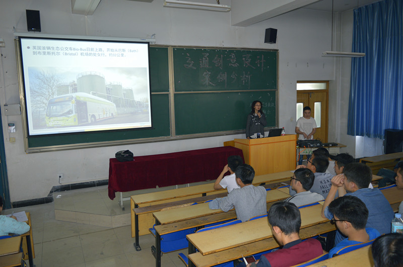 首先,张立群老师向大家介绍了吴芳教授在交通领域取得的巨大成就,吴芳教授结合自己的研究方向和科研项目,深入的为同学们讲解了交通创意设计的理念,主要讲解了新型减速装置、新型路面设计、特殊路段设计、交叉口创意设计、生态公交车、立体快巴、创意斑马线等的设计,并通过展示日本的一些交通运输的人性化设计,在现代交通工程建设方面取得的巨大成就并就国内外相关技术的优劣进行了比较。最后,吴教授通过视频展示了创意设计的应用。