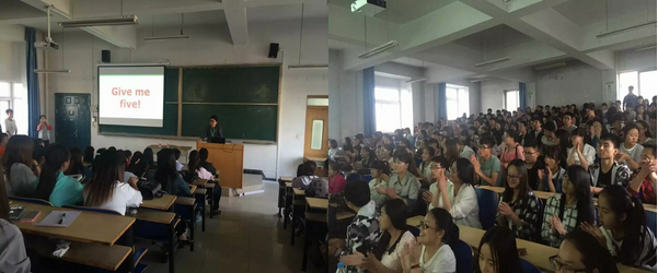 2016年6月2日晚7点,外国语系在南校区教学楼东T3举行创业就业讲座。参加活动的有:芝诺国际英语(ZENO)总经理John Cai、运营副总Jason Ge、外国语系主任刘普、经管系副主任宋国军、外国语系副主任牛勃烜、班主任及200余名学生代表。