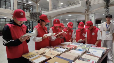 (恩施市七里坪中学阳光志愿服务队翻阅主题书展)
