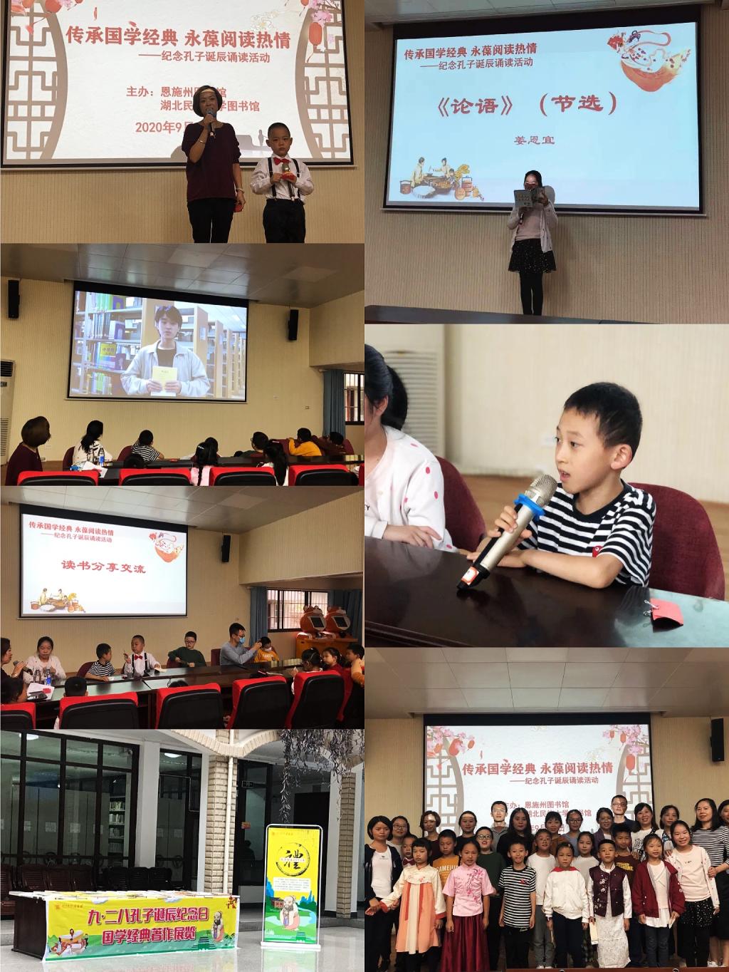 9月10日至10月7日,为纪念我国古代伟大的思想家、教育家、儒学始祖孔子诞辰2571周年,传承中华优秀传统文化,倡导读者诵经典敬圣贤、学礼仪修品德,推进全民阅读活动深入开展,jinnian金年会图书馆联合恩施州图书馆举办了“传承国学经典 永葆阅读热情”孔子诞辰日系列主题活动。