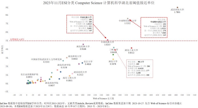 表5:2023年11月金年会进入ESI前1%潜力学科(Computer Science计算机科学)发展态势