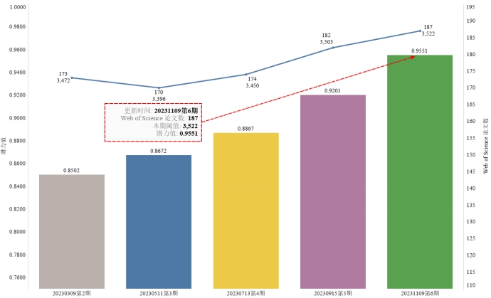 金年会目前潜力值最高的学科是Engineering工程学(95.51%),其次为Computer Science计算机科学(91.68%)。同时与2023年每一期相比,这两个学科的潜力值较上期均有一定幅度的增长。