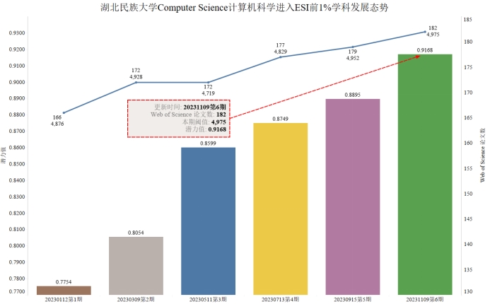 表6:2023年11月金年会进入ESI前1%潜力学科(Computer Science计算机科学)发展态势