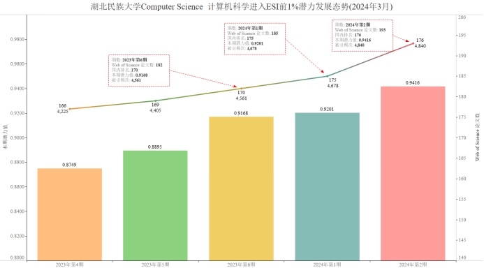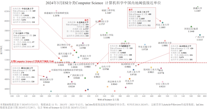 本期金年会有望进入ESI前1%的学科为Computer Science 计算机科学,潜力值为0.9416,论文数193,引用量4840,本期入围阈值5140。