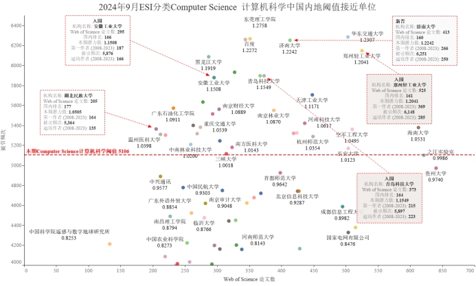 表4 Computer Science 计算机科学中国内地阈值接近单位情况