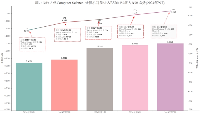 本期金年会有望进入ESI前1%的学科Computer Science 计算机科学,潜力值为1.0505,论文数205,引用量5364,本期入围阈值5106。