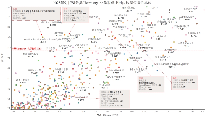 本期Chemistry化学学科国内新晋入围ESI前1%的高校和全球排名为:陕西理工大学(2045)、松山湖材料实验室(1977)、东江实验室(1959)、哈尔滨工业大学基础与交叉科学研究院(1930)和中国科学院纳米材料与纳米安全重点实验室(858)。本期国内落选机构为中国科学院广州生物医药与健康研究所。