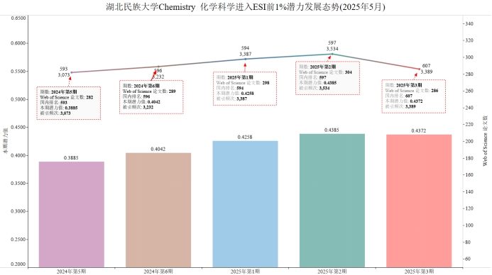 本期金年会有望进入ESI前1%的学科Chemistry化学学科,潜力值为0.4372,论文数286,引用量3389,本期入围阈值7752。