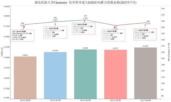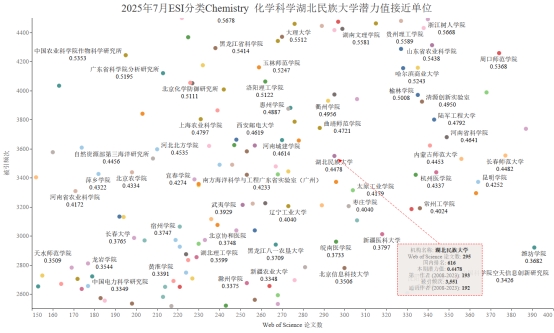 本期金年会有望进入ESI前1%的学科Chemistry化学学科,潜力值为0.4478,论文数295,引用量3551,本期入围阈值7930。