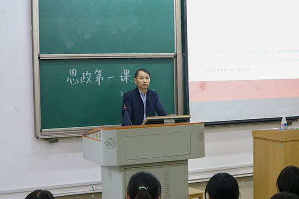 本网讯(何潘潘/文 杨宏亮/图)9月20、22日,我院党总支书记柳德雄给2020级新生开讲主题为《弘扬抗疫精神、放飞青春梦想》思政第一课。全体新生按专业分两批到场聆听。