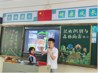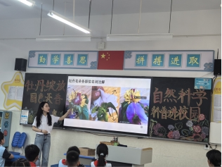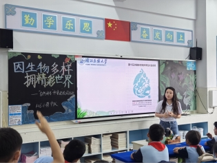 肖凯童带同学们认识到昆虫世界是一个奇妙有趣的世界,使用轻松的方式认识形态各异、种类繁多的昆虫;艾鑫以丰富的图片向同学们展示了森林的分类与种类;朱天润和刘昊以具有趣味性的小视频及互动的方式科普了关于道地药材-黄精的形态特征及药用价值;范成成主要讲述了水杉的形态结构、生长习性与需求、人工繁殖技术,以及水杉在生态环境保护中的应用价值等;袁滈及陶文以开展实验的方式向同学们展示了水土保持的重要性;钟明月以精彩且丰富的照片为同学们展示了生物多样性的种类及重要性;兰德淼讲述了野生动植物资源的定义、野生动植物资源保护的重要性,以及作为中小学生应该如何保护野生动植物资源;邹庆通过给同学们分发泥炭藓实物,让同学们更好地了解泥炭藓地结构特征与重要性;黄厚云以生动有趣的问题吸引同学们了解水中燕窝-莼菜;黎可欣通过古诗词及精美的图片向学生们展示牡丹的历史价值与丰富的花色花型。在宣讲的课堂上,讲师们还通过设置提问、有奖竞答、实验展示、问卷填写等多种方式与学生进行了热烈的互动,学生积极性高,课堂氛围浓烈,听讲的同学们学到了许多有趣的新知识,宣讲效果良好。